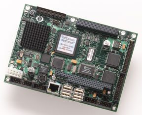 Octagon Systems released the XE-800, an SBC using the EPIC (embedded platform for industrial computing) form factor. Sized midway between the PC/104 and EBX form factors, the EPIC-based XE-800 is designed for embedded military, security, industrial and mobile applications. It can operate over a –40° to 75°C temperature range and features four USB 2.0 ports, two USB 1.1 ports, two eight-wire serial ports, 48 lines of digital I/O, 10/100 Base-T Ethernet, CRT and flat-panel video and PC/104 and PC/104-Plus expansion. A CompactFlash socket is available for bootable and removable memory, up to 2GB. Companion XE-800 OS Embedder kits, which include hardware and software for instant operation, are available for Linux 2.6 and QNX.