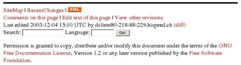Figure 1. Typical Oddmuse page footer, with links to common wiki functions such as edit text of this page and search.