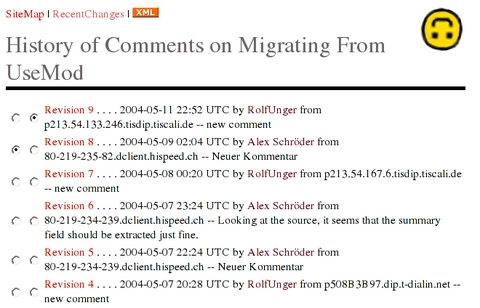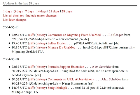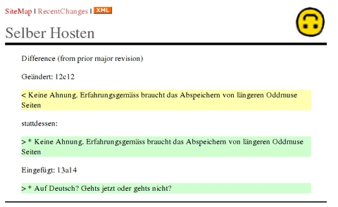 Figure 3. Oddmuse's visual diff makes understanding what has changed between revisions obvious and clear.