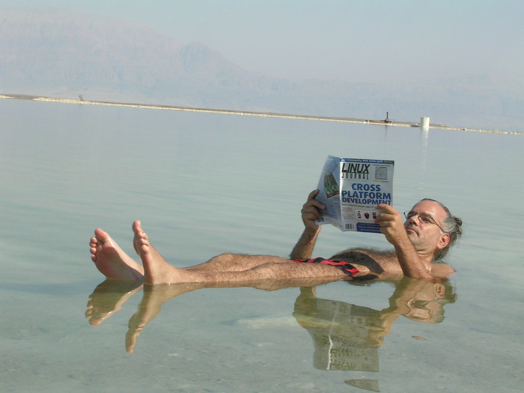 Hello from Munich. This is one more in the long and famous series of “Man reading a newspaper on the Dead Sea”. The newspaper of course is special. Hope you like it. I still like your magazine, it is so refreshingly different from what we have here.