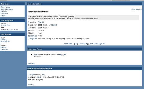 WebCollab is ideal for projects that can be broken down into a series of tasks with brief, one or two sentence, descriptions. Each project and task has a description field, start date, end date, priority and assigned group. When a task is created for a given project, it is treated as a subproject, with the same information fields and editable data as its parent job. This portion of the software is similar to most versions of popular to-do lists, but it adds the flexibility to be used as a quick checklist or a fairly in-depth breakdown of a task with running commentary.