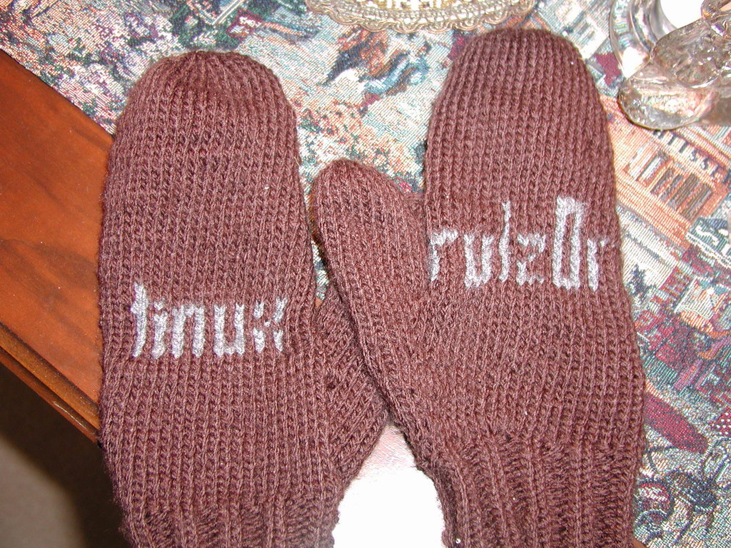 My son Graeme is quite a Linux fanatic. One of his good friends made him these mittens for Christmas this year. I thought you might want to see this upcoming fashion trend for what every “cold” Linux user should be wearing.