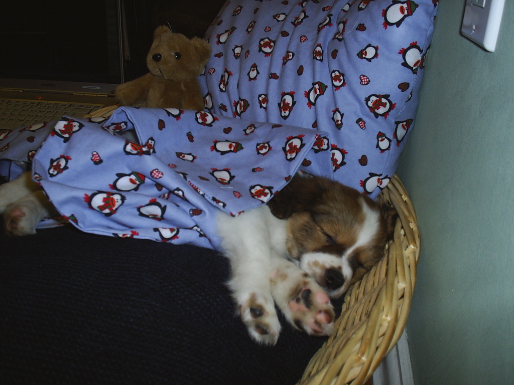 After hinting for the last four and a half years of our marriage my wife finally conceded, and Charlie is the result. Immediately upon agreeing we would take the pup, my wife went to work using some fabric endowed with a Tux look-alike and made a few goodies for our new puppy. Hopefully this finds you the editor in good health, as well as the rest of the LJ staff. Here is to what may become of Linux in 2005, cheers!