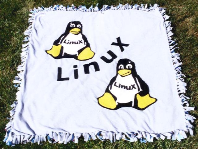 My home office is in the basement of my Wisconsin home. It gets rather chilly here in the middle of the winter, so my wife surprised me with a blanket she made to help keep me warm as I use my Linux workstation.