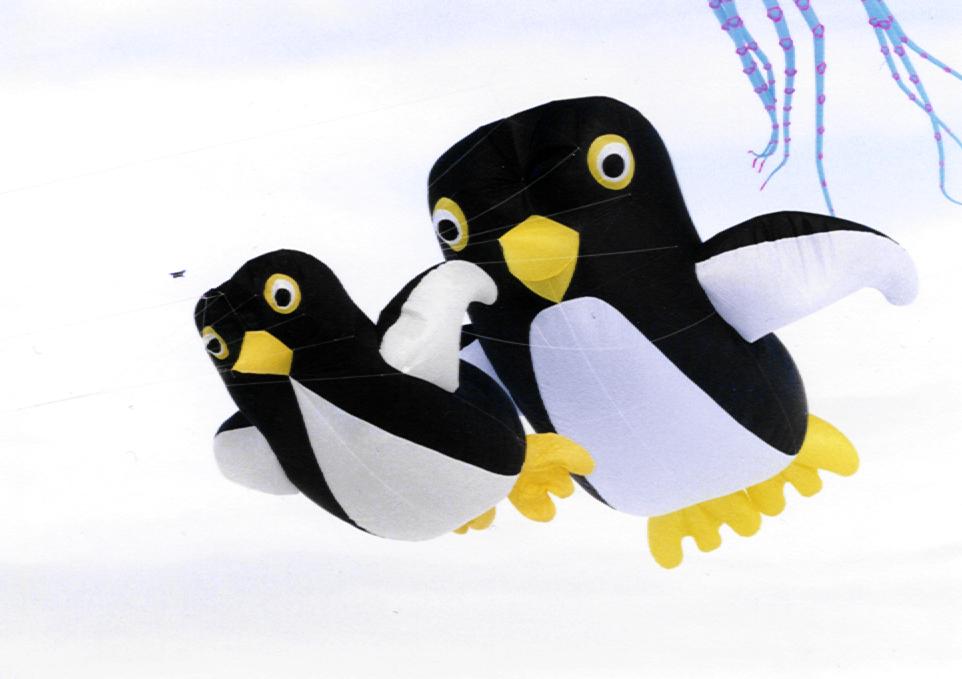 A mid-winter kite flying event called “Kites on Ice” was held in Madison, Wisconsin on Lake Monona. My son captured this view of some penguin kites flying high above the snow and ice-covered lake.