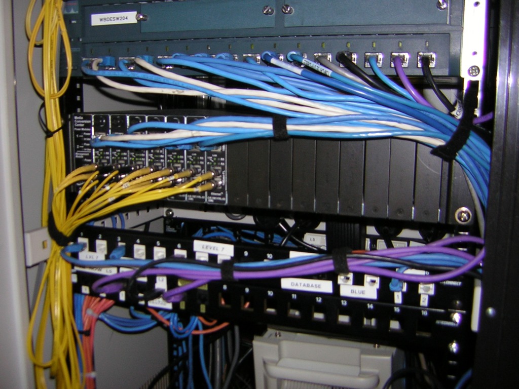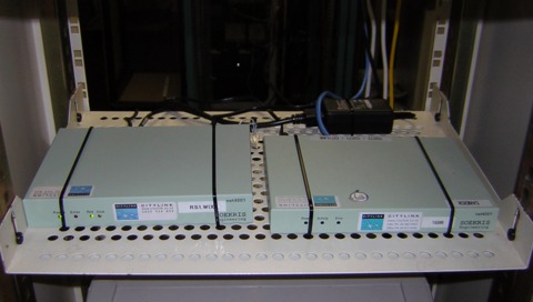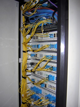 Figure 2. The Citylink fibre (yellow cables) is converted to copper (blue) for distribution to clients.