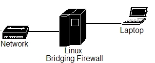 We start out simply by attempting to achieve connectivity between a simple two-NIC machine. When we are finished, this Linux box should act as a standard hub, passing traffic from one port to another as needed. When we plug one NIC in to our regular network jack and a laptop into the second NIC, we will be able to use the network from the laptop as if we were connected directly.