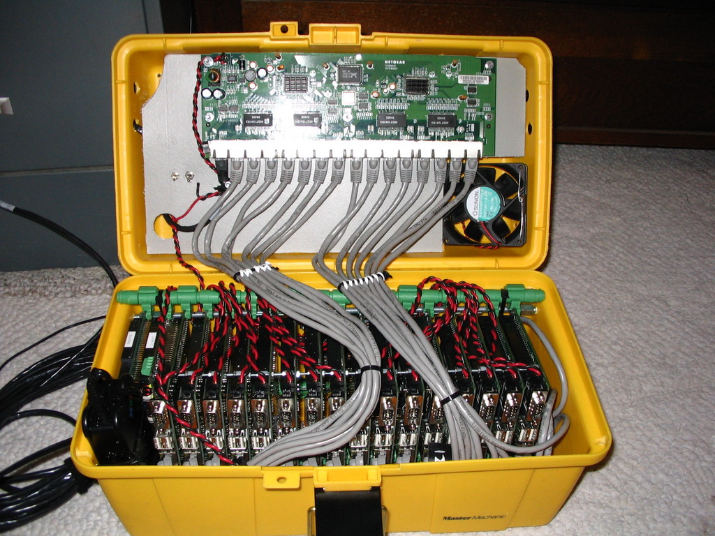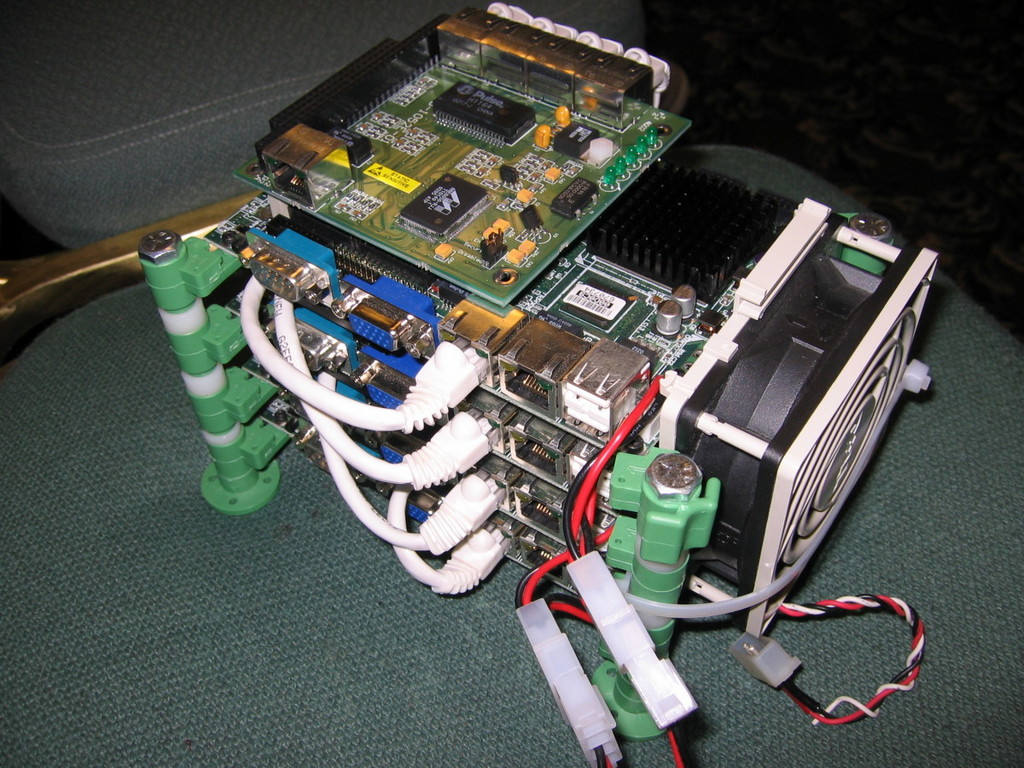 Figure 5. The Geode minicluster needed a full-size power supply to deal with the demands of Pentium III-based nodes.