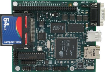 We settled on the Technologic TS7200 boards for this project. The choice of a non-Pentium architecture had many implications for our software stack, as we shall see.