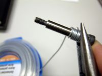 To solve the SnapStik problem, we spent some time seeing how the supports could fit the board. The best we could find was a configuration in which three SnapStiks fit on three of the holes in the board, as shown in Figure 7. Notice the threaded metal rod, available in any hardware store.