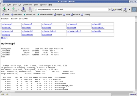 It then displays the results in a browser (Figure 2) and saves the result in a log, again sorted by date on the filesystem. It serves as a simple dashboard to give quick stats on each server.