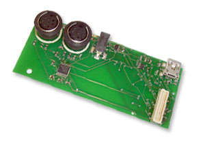 Two different waysmall interface boards now are available, the waysmall STUART and the waysmall HWUART. waysmall HWUART was used exclusively with the original non-Bluetooth version of the basix module and thus is not discussed further here. The waysmall STUART board essentially converts the connex and basix-Bluetooth modules into waysmall computers, hence the name of the board. These boards, which measure 3.19" x 1.38" x 0.5" (81mm x 35mm x 12.7mm, provide access to the two serial ports, the USB port and the power supply, all through the Hirose 60-pin header.