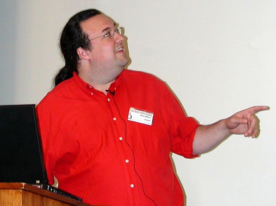 LinuxFest Northwest, the largest users group conference in the Pacific Northwest, was held again in Bellingham, Washington, 20 miles south of the Canadian border. Among the presenters was Google's Chris DiBona, shown here updating the audience on code.google.com, the portal site for the company's open-source projects.