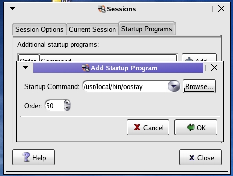 The scripts used by oooqs and ooqstart-gnome do not experience this problem. So, you may want to use a script modified from Linux Desktop Hacks, published by O'Reilly & Associates. With this method we create a script and place it in a file called /usr/local/bin/oostay. The script looks like this: