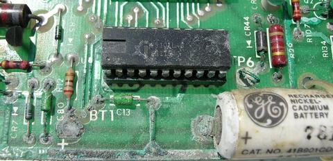 Reverse engineering the AS2518 MPU was the subject of my Master's thesis in Industrial Technology. Nonworking games often suffer the same tragic design flaw we see on old computer motherboards. Figure 1 shows the damage caused by a leaking Ni-Cad battery that was soldered directly onto the MPU. It ruins not only the electrical connections in IC sockets, but also corrodes the wiring harnesses joining the MPU to the rest of the system.