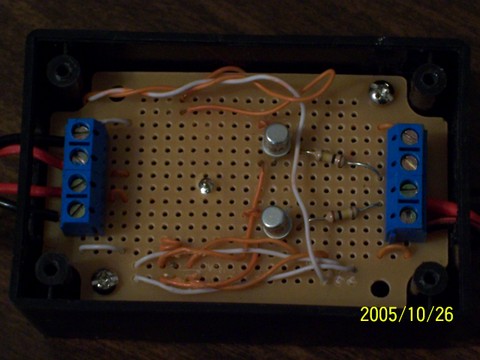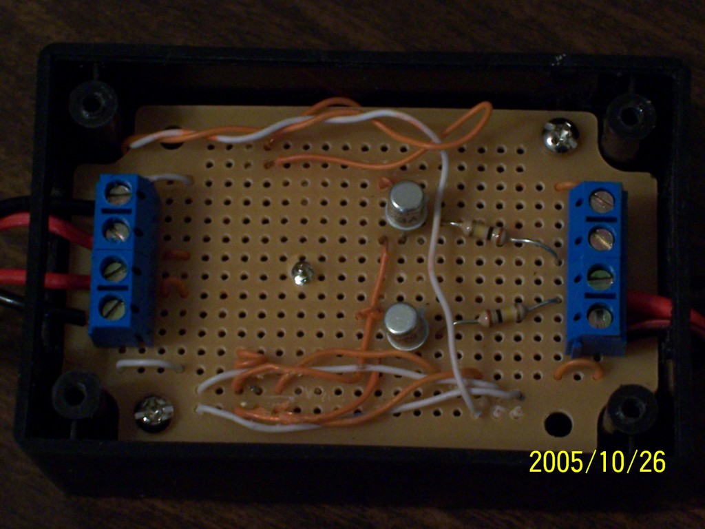 As we all know, water and house interiors don't mix, which is why I added this cheap and simple water-detection circuit to the mix. The circuit performed well in a test environment using a pan of water, but lacks any real-life testing. The circuit shown in Figure 4 was created from a schematic that is listed in the on-line Resources. I removed the timer, buzzer and other unnecessary components, leaving a single switching transistor and a resistor. The circuit can be powered by a DC adapter in the 6-9-volt range. The probes in my system are simply a short piece of scrap copper tubing, and they just sit on the floor of my shop bathroom several inches apart. I have multiple probes connected to the same water alarm circuit, which provides multiple monitoring points per circuit at the loss of being able to identify the exact location of the leak. I leave it up to you to determine the correct probe separation for your application, because I don't have any exact distances. The water alarm (Figure 5) that I created contains two transistors and thus two alarm circuits on the same board.