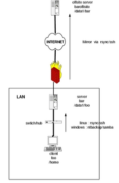 You will be prompted for user bob's password, and then the foo /home directories are replicated to /data1/foo/home on bar (bob needs an account on the server and write permission for /data1/foo).
