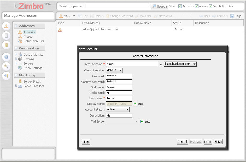 At this point, I need to mention one of the irritating quirks of Zimbra. It installs its SMTP, POP3, IMAP and HTTP/HTTPS servers in high-numbered ports, and then uses iptables to map to them. So, for example, port 80 gets mapped to port 7070, where Zimbra runs its Web-mail client. This can come as a nasty surprise if you install Zimbra on a host with an existing Web server.