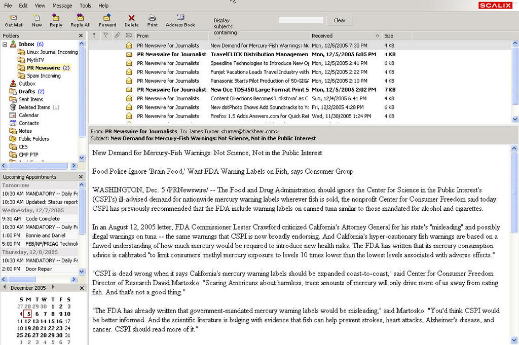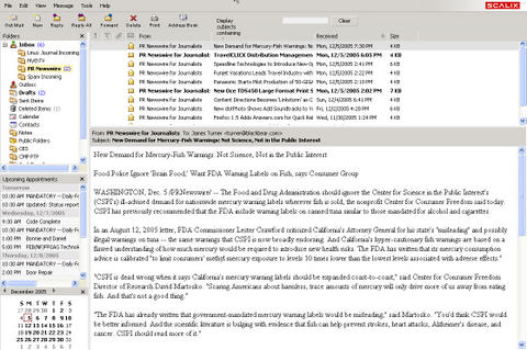 It's when you add the Scalix plugin to Outlook that Scalix really shines, however. I use Exchange on a daily basis at my workplace, and I am now using Scalix for my personal e-mail outside of work. Honestly, there's no practical difference between the two if you use Outlook. The mail-filtering options are a little different, but you really have to look hard to see where the two diverge. Among the more useful features that it shares in common with Exchange is the ability to define filtering rules that run directly on the server. And, because ActiveSync talks to Outlook, you can sync your PDA to your calendar, mail and contacts.