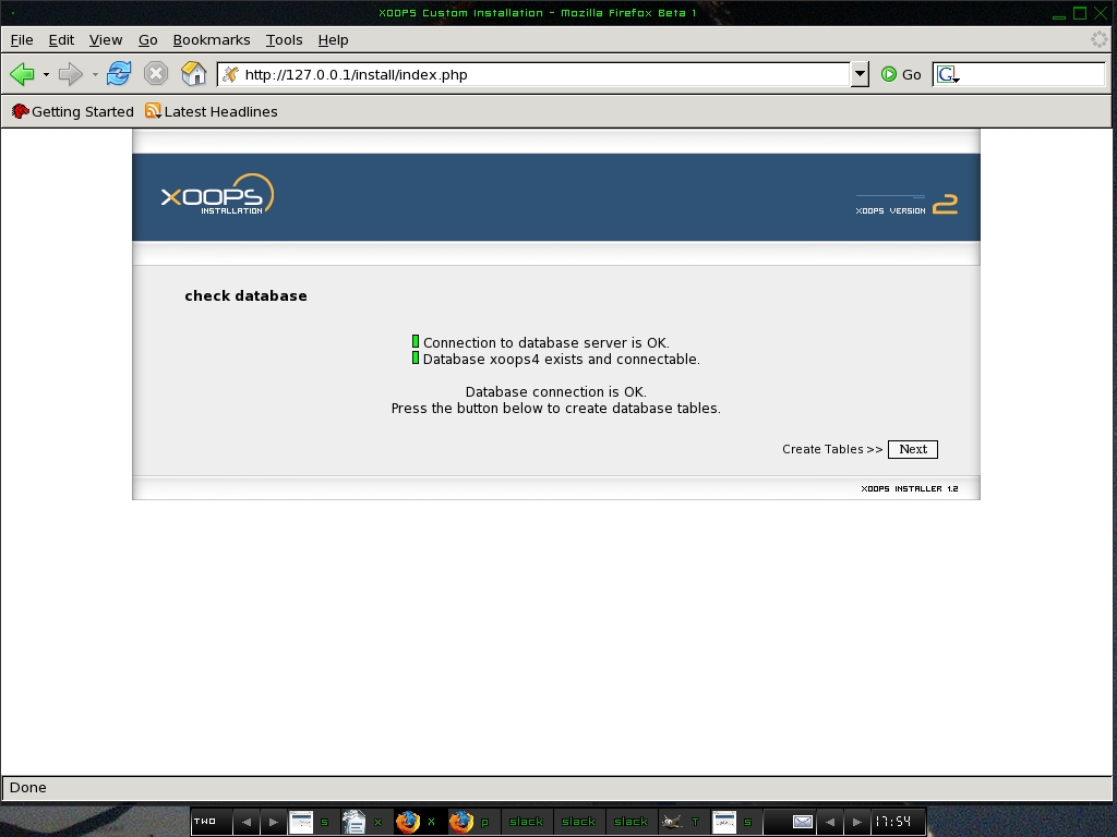 Click the Next button once again. Now the XOOPS installer creates all of the MySQL tables it needs (Figure 12).