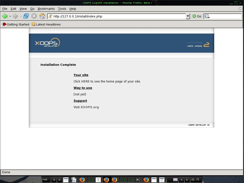 Click the Next button once again and that should get your XOOPS site up and running. You should see a final confirmation screen like the one shown in Figure 15.