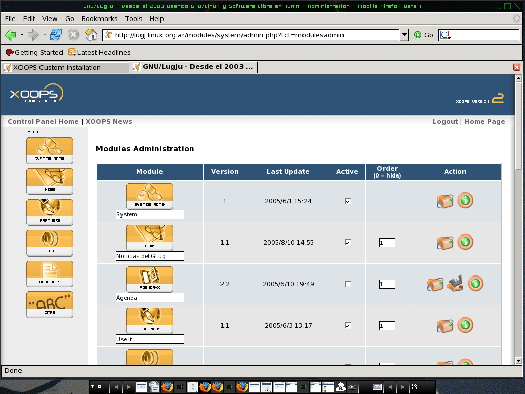 From this menu, you can activate and deactivate your modules, or just add new ones. You can download those new modules from the XOOPS site.