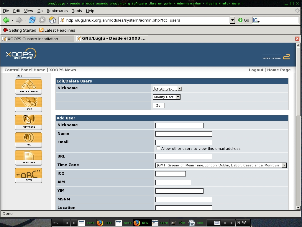 XOOPS allows users to register for your site. In this case, XOOPS adds the users to your database. To add users yourself, or modify existing users, check out the option Edit Users (Figure 20).