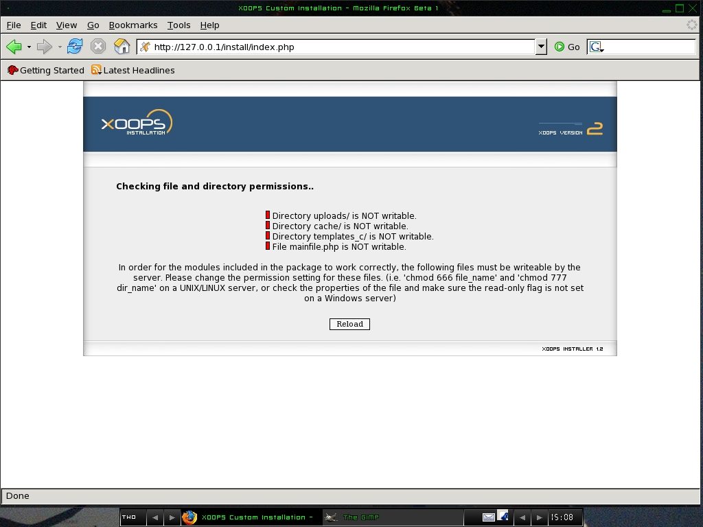 Once you have set the correct permissions, press the Reload button, and you should see that there are no longer permission problems (Figure 5).