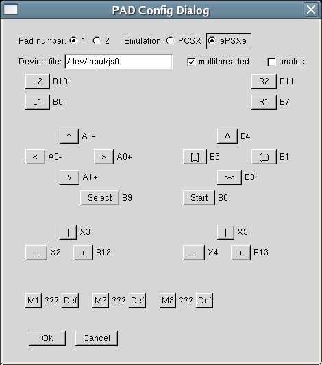 Next to Emulation, click the PCSX radio button. If your controller is analog, check the analog check box as well. From here, you can click the various buttons to change what they map to. With a joystick, for example, you might click the up arrow in the left cluster of four and then press the joystick handle forward. You can set some of these buttons to map to your keyboard as well, but your keyboard options are limited, so try to keep most on the controller. If you're into creating macros, use the M buttons on the bottom.