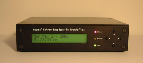 Airchitex's Cuckoo is a network appliance for those who want the peace of mind that comes with having one's own SNTP time server. Cuckoo is designed to supply accurate and precise time to every machine in your network, sans loud bird. The device receives its time information from global positioning system (GPS) satellites, making it accurate to +/– 1 millisecond. Network protocols include NTP, TIME and DAYTIME; autosets for time zones and daylight-savings time work in the US. Airchitex claims that Cuckoo avoids common time errors stemming from PC clock drift and Internet routing latency, among other issues.