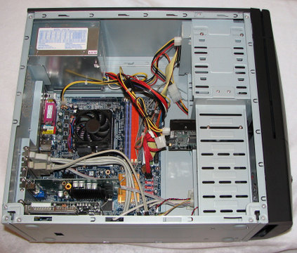 Figure 2. The internals of the Linux Beach MultiMedia Center 500; motherboard is the same as the LBMC 1000.