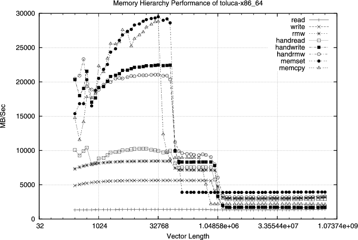 We wanted to see if latency really does affect performance as much as AMD claims and reason dictates. AMD sent out a number of sample products to reviewers early on, when DDR2 modules still had high-latency issues. When AMD finally released the socket AM2 processors, it claimed we would see about a 1% performance increase over the early samples. We didn't have an early sample, so we compared the previous latency capabilities of DDR2 to the current ones by changing the latency settings in BIOS. We ran a memory/cache benchmark using the two different latency settings. You can see the performance with faster settings (4,4,4,12) in Figure 1. See Figure 2 for the benchmark results for the old latency settings (5,5,5,15).