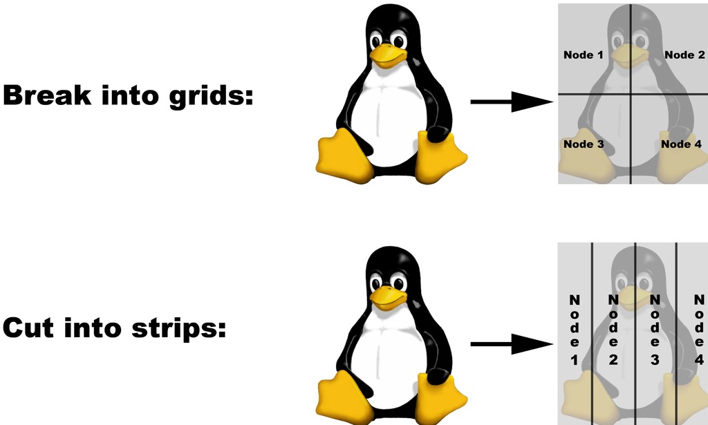 You can apply the same methods to tackle image processing, audio processing or any other task that is easily broken up into parts. As an example of how to do this for whatever task you have at hand, I consider applying an image filter to a rather large image of your friend and mine, Tux.