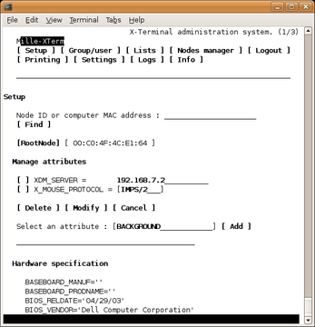 The other interface lets administrators manage the configuration of the terminals via a Web browser. Administrators can organize terminals hierarchically by groups and apply configurations according to specific criteria, such as location or hardware type. But the configurator serves yet another function. It is designed to work with links, a console text browser, as shown in Figure 3. The terminal can boot in a special admin mode that does not require running the X server. To boot in this mode, the option mode=admin is appended to the kernel options in the bootloader configuration. Then, links is launched with the terminal configurator URL and MAC. The administrator can change the terminal settings directly. When complete, the terminal reboots and receives its new configuration.