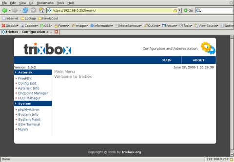 One of the main features of Trixbox is its upgradability, so before panicking about the TDM configuration, I decided to update first. After logging in as root, I ran trixbox-update.sh. Twice. The first run updated the script itself and the second updated the rest of the system. After finishing, it told me to reboot the system. That time, all the TDM-related modules loaded, though only wctdm and zaptel were needed. The card was detected correctly, and running genzaptelconf from the command line configured it correctly. At this point, the Trixbox system was installed, up to date and functional.
