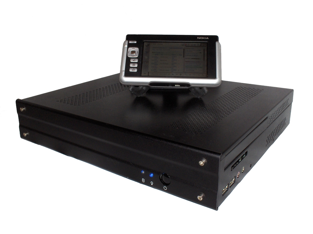 My idea was to build a fanless Mini-ITX appliance that would grab content from my file server and play it using MPD (Music Player Dæmon). To control the appliance, I use lightTPD (a PHP-enabled Web server) and phpMp (a PHP application that controls MPD), running on the appliance. This gives any computer on the network with a Web browser the power to control the appliance. My controller of choice is a Nokia 770. Using Opera, which comes installed, I can point the browser to each of the appliances and control them over my wireless network.