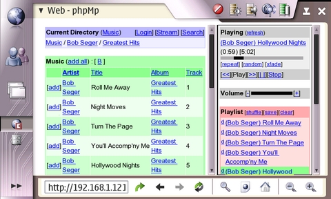 Because the appliance does not have a screen, I needed a way to control the audio playback. Fortunately, the same folks who developed MPD also developed phpMp. phpMp is a small and simple Web application designed to control an instance of MPD using the socket extension in PHP. In order to get phpMp running, I had to install a Web server. Because I was using an embedded platform, I had to be conscious of application size. I also wanted something that was very easy to configure and did not take up too many resources. So, with those considerations in mind, I decided to use lightTPD. lightTPD is a small, fast, full-featured Web server that can run PHP scripts.