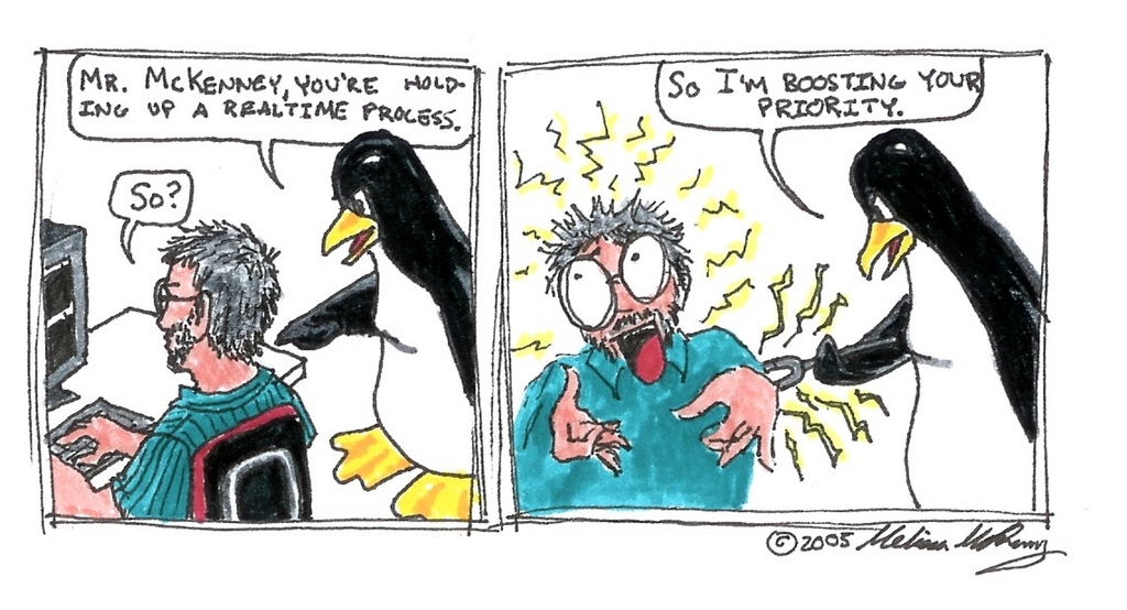 Such delays are not what we want in a real-time system. This situation resulted in numerous “spirited” discussions on the Linux-kernel mailing list, which Ingo Molnar closed down with the following proposal:
