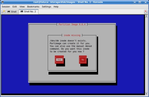 You should check to see if you have a /dev/dm inode before you use partimage. If you don't, you will be greeted with a screen like the one shown in Figure 1.