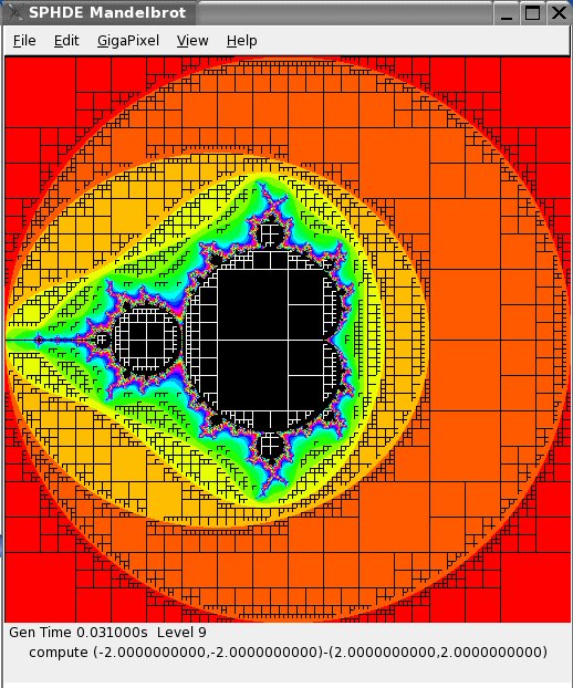 Later, when I was working on the SPHDE Project and was trying to think of a good demo, I remembered the quadtree Mandelbrot Project. The hard part was converting the original Mandelbrot program from Borland OWL to Linux and GTK2. The actual conversion to use SPHDE was much easier.