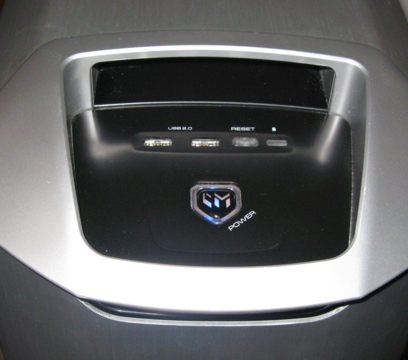 Figure 2. The power and reset switches along with USB ports and drive activity light are recessed into the top of the case.