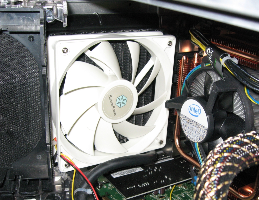 We had to make this modification only because the first video card we chose used a built-in water cooler with an external fan. The only reasonable place to mount the cooler was in place of the 120mm CPU case fan. We even replaced the video card's fan with a more powerful fan because our first choice of motherboard used a hot AMD CPU. You could mount the cooler on the door, but the water tubes would prevent you from opening the door completely.