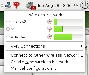 Figure 2. Left-click the NetworkManager applet to display and connect to available wireless networks.
