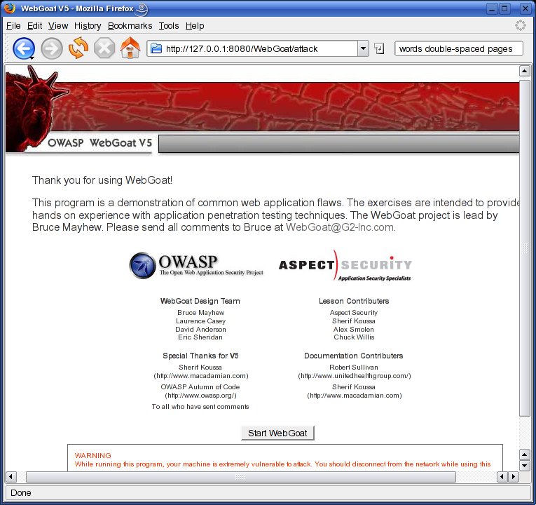 Once you get the welcome screen, click the Start WebGoat button to begin.
