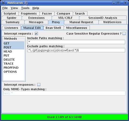Therefore, you need to put your Web proxy into intercept mode (trap mode on Paros). Figure 3 shows WebScarab set up for interception—all you need to do is check the box next to “Intercept requests”. Paros is similar: click the Trap tab, and check the box next to “Trap request”.