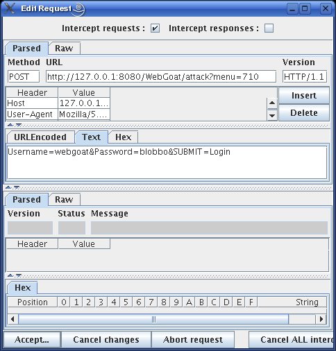Because WebGoat is itself a tutorial, it would be redundant for me (and beyond the scope of a single article) to walk through every lesson. Similarly, Web proxies are too versatile and complex to explain fully here. (In the future, I may very well devote an entire article to them.) But, I can walk you through a sample WebGoat lesson, including correct proxy use, as an illustration.