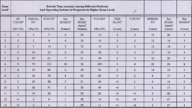 Table 1. Graphic Refresh Rates at Progressively Higher Zoom Levels—Notes